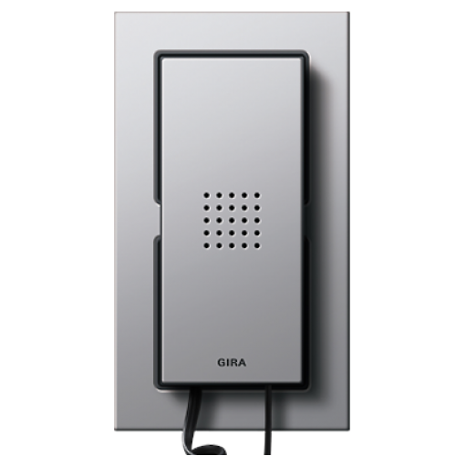 Квартирная станция с трубкой идеальное решение для тех мест, где не может использоваться громкая связь (например в офисах с открытой планировкой). Представляет собой устройство, оборудованное трубкой, кнопкой вызова, микрофоном и громкоговорителем. С помощью дополнительной интеграции TFT-дисплея возможно расширение функционала квартирной станции. Устанавливается в стандартные 58-мм монтажные коробки для скрытого монтажа. Возможна установка в рамки всех дизайн коллекции электроустановочных изделий Gira, благодаря чему устройство идеально подойдет в любой интерьер.