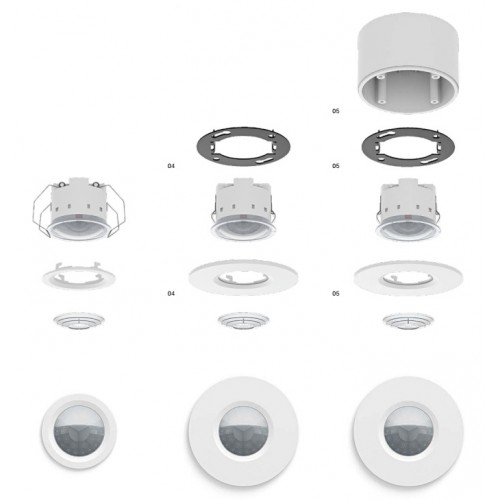 KNX Gira Mini с его плоским дизайном идеальны для помещений, к которым предъявляются строгие архитектурные требования. Он регистрирует даже малейшее движение в комнате и автоматически управляет различными функциями системы KNX: освещением, отоплением, вентиляцией. Может быть установлен на потолке двумя способами: накладным монтажом и заподлицо. Может использоваться как внутри помещения, так и на открытом воздухе или даже во влажном помещении благодаря степени защиты IP 44. Радиус действия составляет 12 м. при высоте установки 3,5 м. Область охвата составляет 360о. Чувствительность может быть установлена индивидуально. Это позволит исключить возможность случайного срабатывания. Дальность охвата может быть ограничена с помощью специального экрана. После установки декоративную рамку вокруг датчика можно окрасить в цвет потолка. Вариант Komfort отличается от варианта Standard отличается большим набором дополнительных функций.