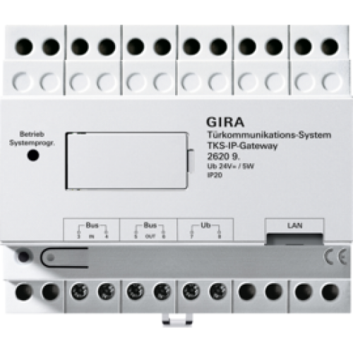 Варианты дизайна рамокGira TKS-IP шлюз делает управление домофонной системой еще более удобной и гибкой. С помощью этого устройства обычные компьютеры и устройства на базе ПК, например Gira Client Control 9 и 19, можно подключить к сети и использовать в качестве квартирных станций. Он предназначен для преобразования сигналов от домофонной системы Gira в сигналы сетевых протоколов. Использование логического модуля открывает новые возможности применения, например, контроль доступа с помощью Gira Keyless In.