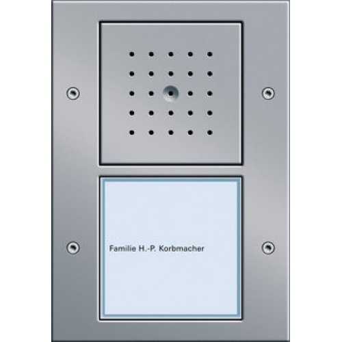 Дверная станция может быть расширена с помощью дополнительных 1-3 клавишной секцией вызова. Клавиши вызова подсвечиваются светодиодами с низким энергопотреблением. Водозащитные накладки клавиш выполнены из ударопрочной пластмассы